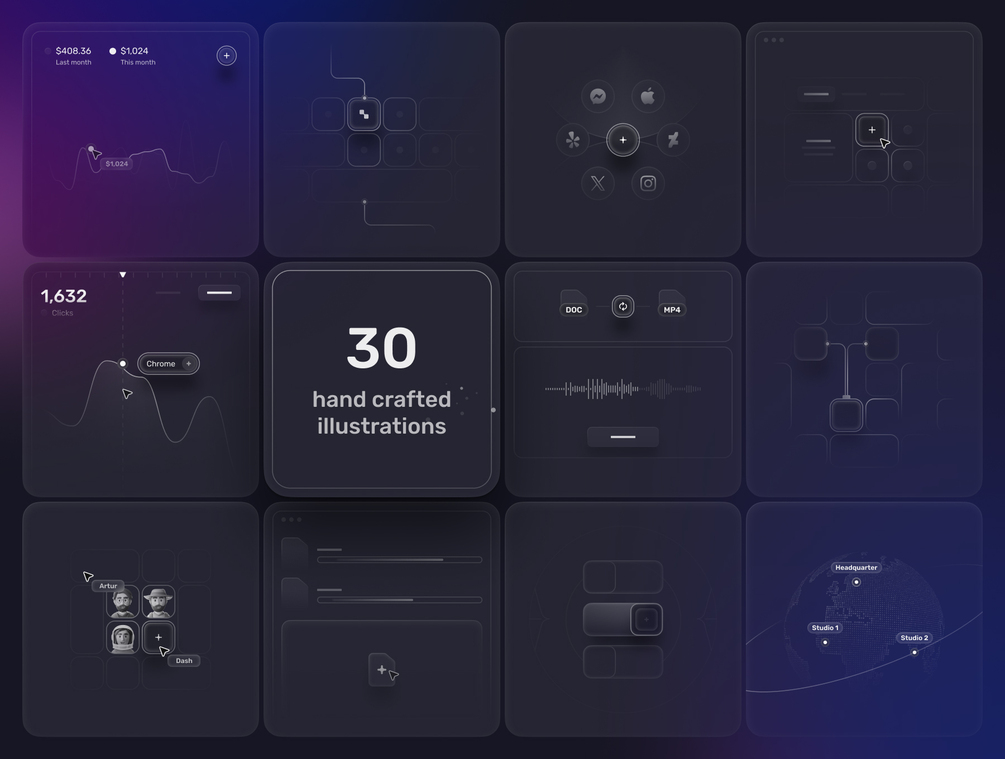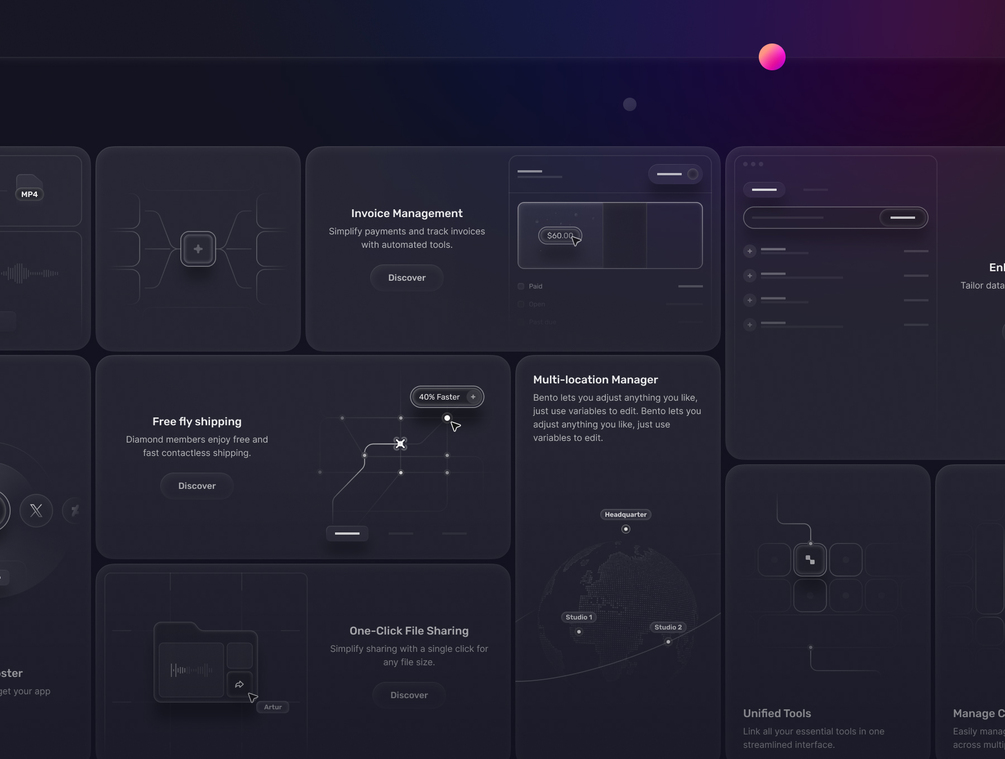 Introducing the Bento Design System: Cards, ideal for website landing pages and app design. This set includes 30 exclusive and beautiful illustrations designed to help you quickly drag and drop cards to build your website's landing page sections in minutes. Unleash limitless creativity with resizable Bento Cards.