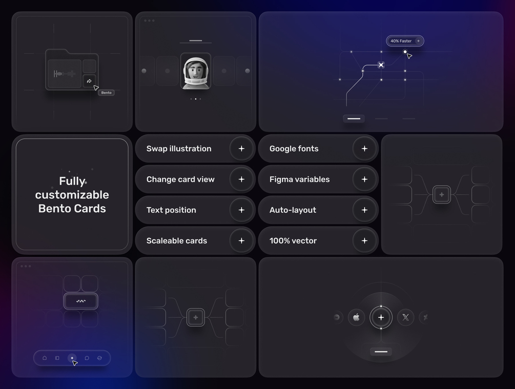 Bento Design System - Cards - Figma Template - UI Kit - Website Template