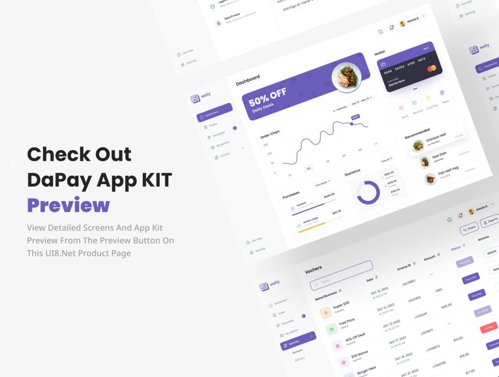Eatly is a Premium and High-Quality Food And Delivery Dashboard UI Kit With 33+ High-Quality Screens And Easy To Use In Figma Crafted With Love And UX Friendly Design.